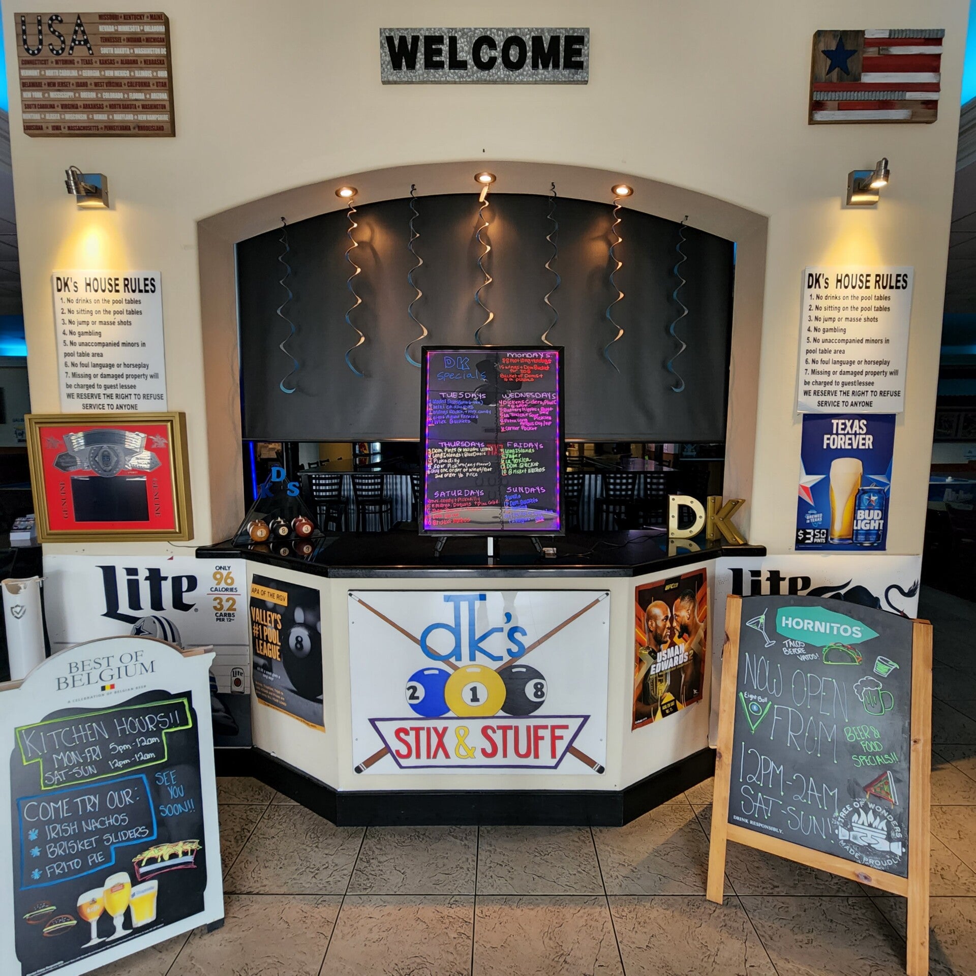 An entertaining place for the whole family to enjoy. Whether it's billiards, sports, drinks or food, we have it. Jukebox driven music, so you can have a conversation, or place your order without screaming. Daily food and drink specials, with the occasional off menu surprises on the weekends. Have a party to plan, we are more than happy to help you set it up. We are also available for fundraisers for your organization needs.